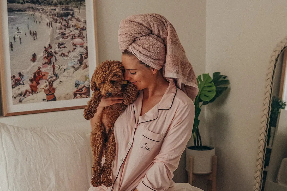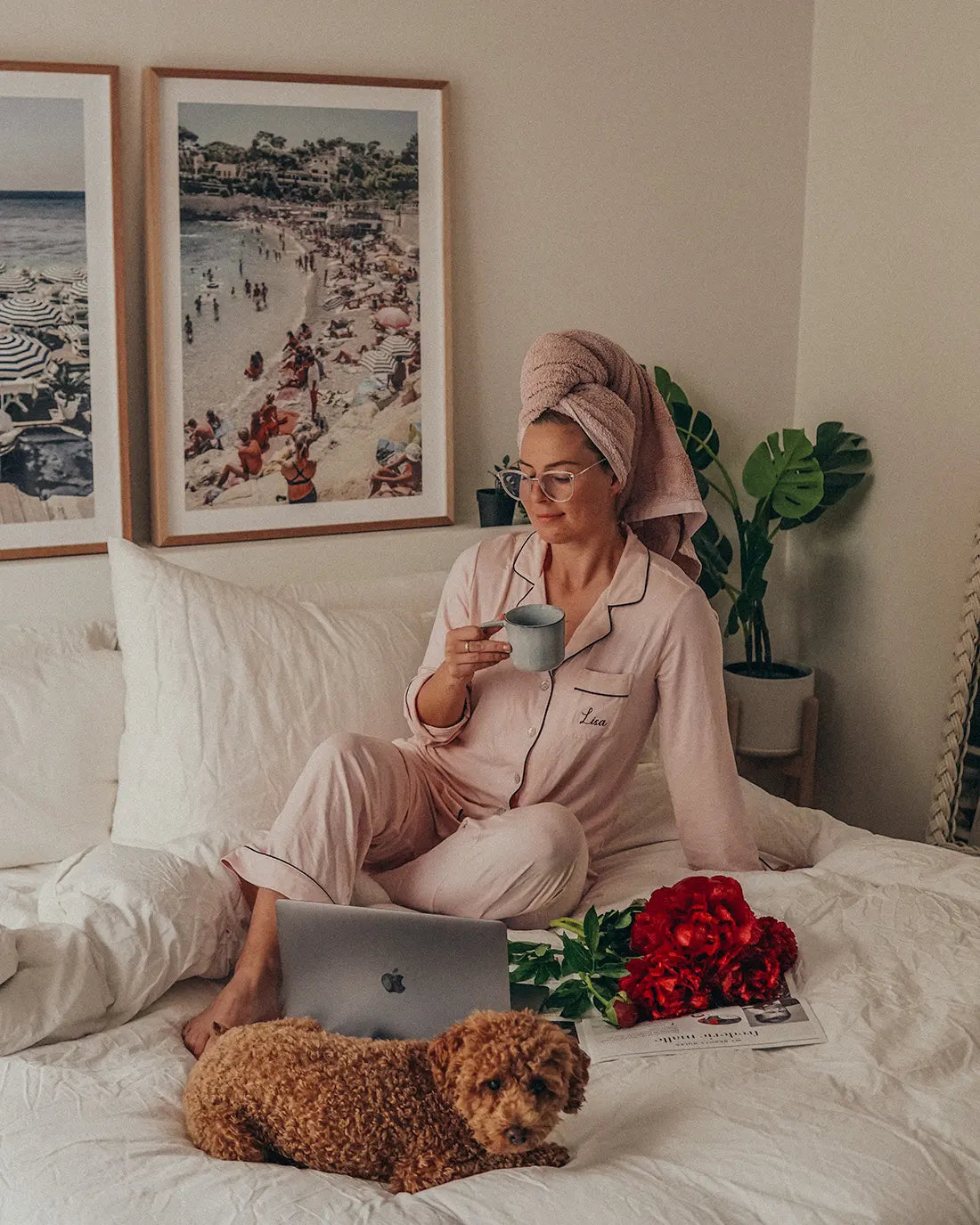 Sleeping & working in the same space can cause the lines to be blurred. Set yourself a rule when it comes to getting dressed. I have been living in these Homebodii personalised PJs for most of isolation and they can even transition into cute daytime outfits too, like pairing this personalised top with you fave pair of jeans. And of course, changing it up will help reset your mind during the day and keep you looking cute in all those zoom meetings.