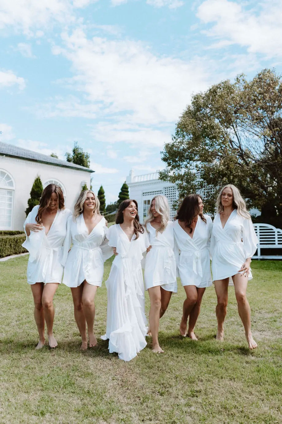 "I looked at my bridesmaids and they just looked and felt like angels. I wore the most beautiful long sheer gown with a white corset underneath and I just felt so special wearing it. Frolicking around the gardens drinking champagne with my best friends - it was magical. Plus the team at Homebodii were just so helpful and ensured my girls and I had everything we needed on time, forever grateful."