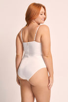 It boasts underwired molded cups, a lightly boned bodice, and an elasticated waist that work harmoniously to sculpt and enhance your natural curves. Whether you choose to wear it beneath a delicate lace robe or as an elegant addition to a simple outfit, this bodysuit is tailored to accentuate your figure with its form-fitting lightweight satin that delicately embraces your body. It's a true ode to your individual beauty.