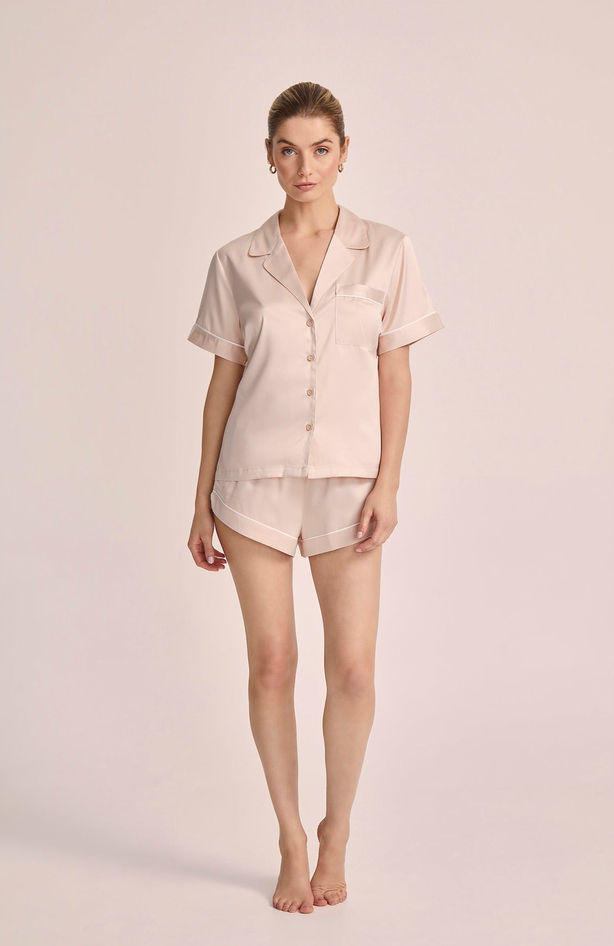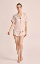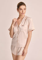 Grace Short Pyjama Set - Blush with White Piping