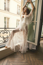 Introducing the "Ruffle Rosalina Robe" by Homebodii – a true embodiment of romance, elegance, and the spirit of the City of Love, Paris. This exquisite robe is meticulously crafted from delicate georgette and chiffon, elevating your loungewear to a luxurious level.