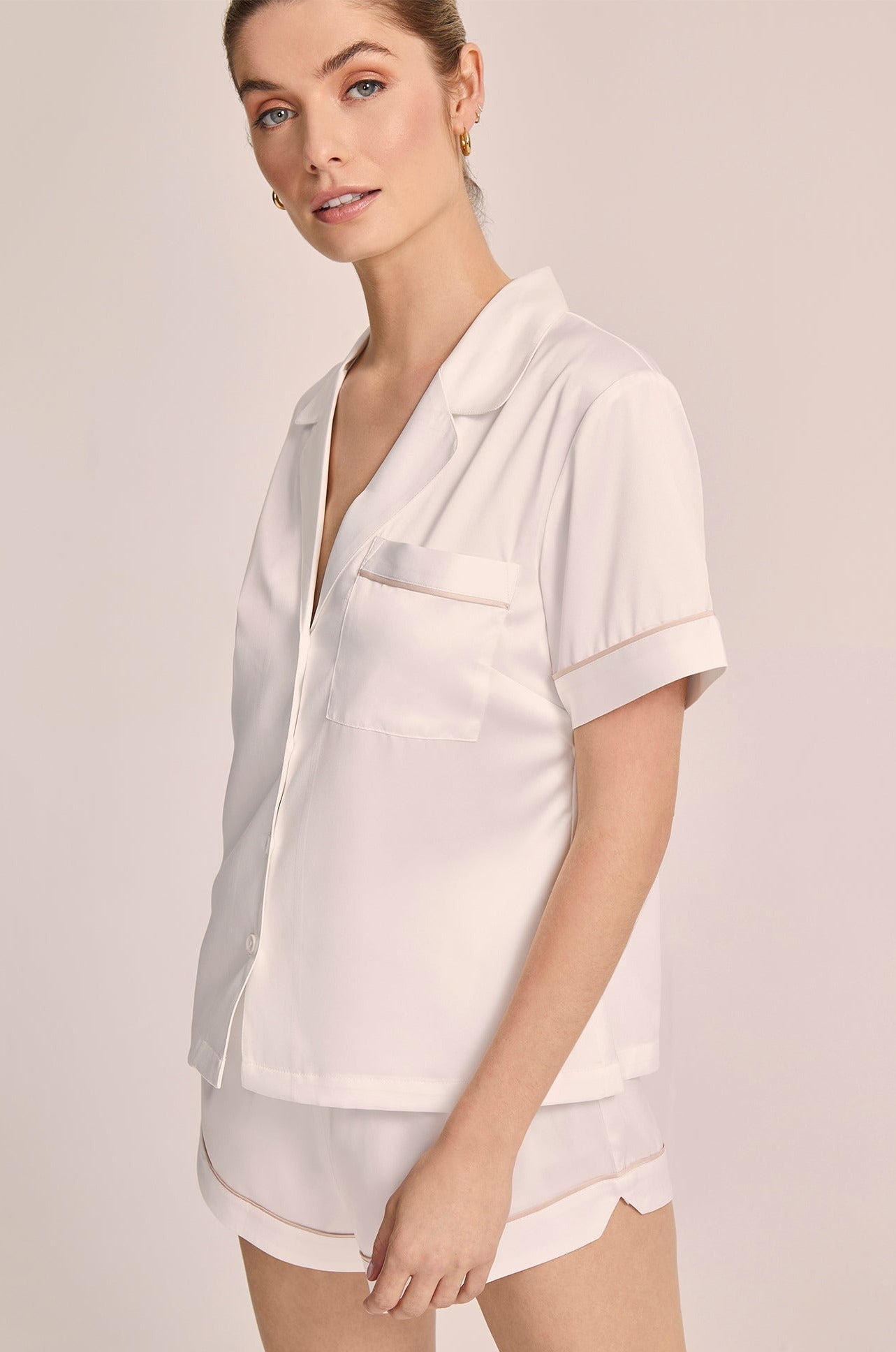 Finished with elegant piping trim, this pyjama set merges timeless design with modern sophistication. Whether you're winding down after a long day or savoring a slow weekend morning, the **Homebodii Grace Pyjama Set** will be your go-to for luxurious comfort.