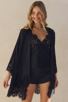 Delicate lace trim graces the sleeves and hem, adding an element of timeless romance, while the self-tie waist allows for a flattering, adjustable fit. Whether you're starting your morning routine or unwinding in the evening, this robe is the perfect blend of sophistication and ease.