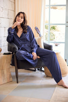 Grace Lounge Pyjama Set - Navy with White Piping