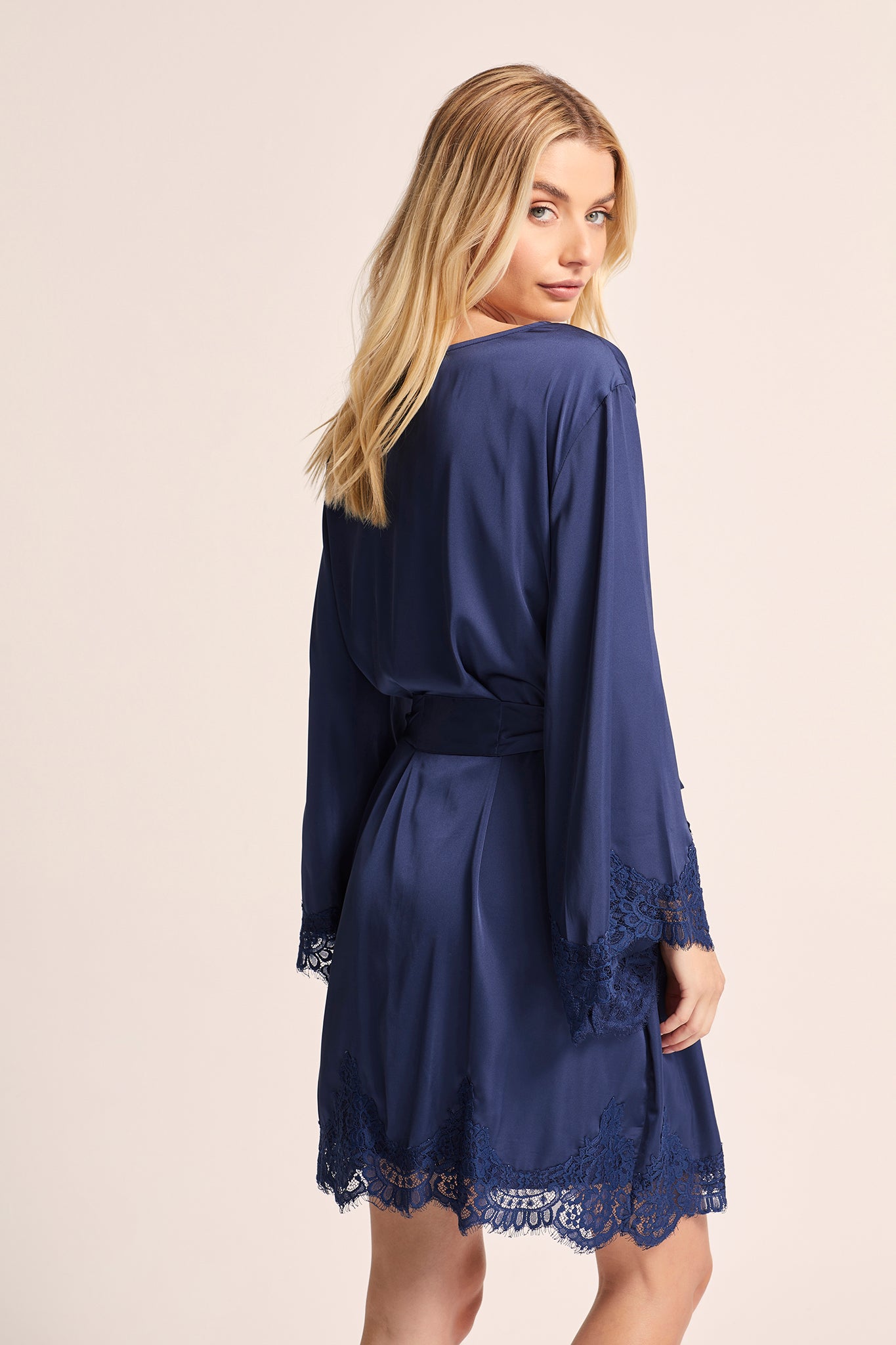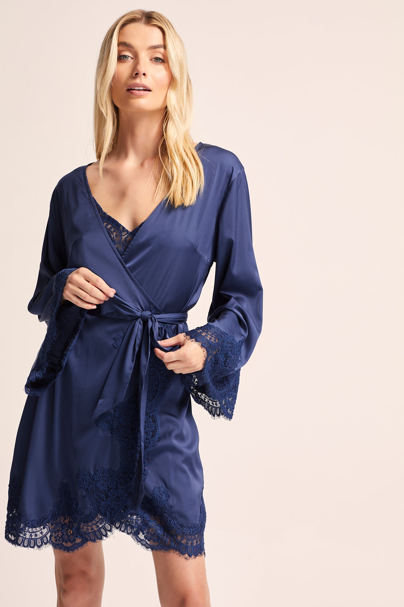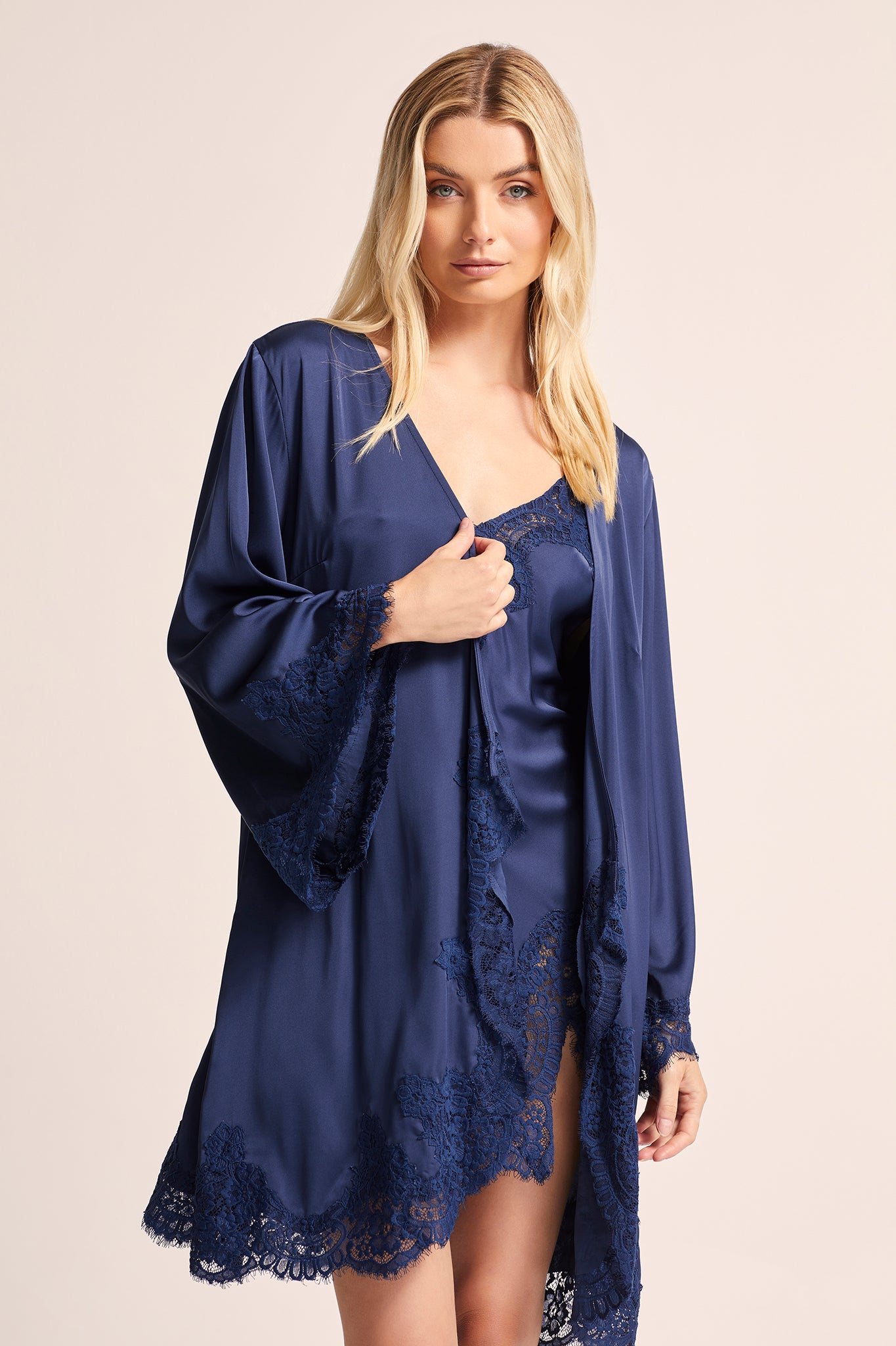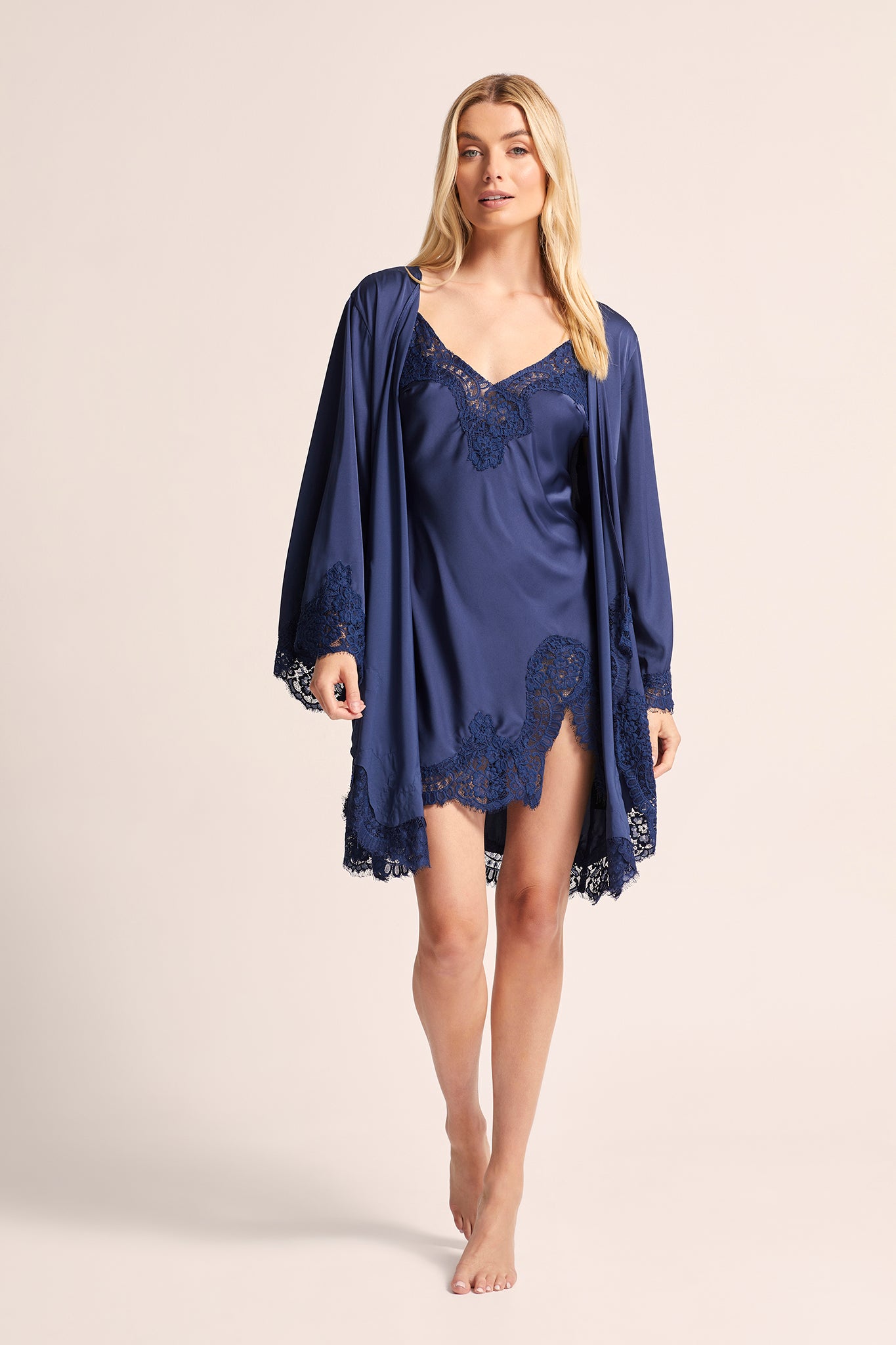 Discover the Sian Collection, a captivating ensemble of robes, camis, and slips designed to elevate your sleepwear to new heights of luxury. At the heart of this collection is the Sian Lace Robe, a masterpiece of elegance and sophistication. Crafted with meticulous attention to detail, this robe combines luxuriously soft satin with delicate cotton lace, designed to drape effortlessly over your figure and accentuate your natural curves. The cinching waist tie and tailored silhouette ensure a flattering fit, making it a perfect choice for any special occasion.