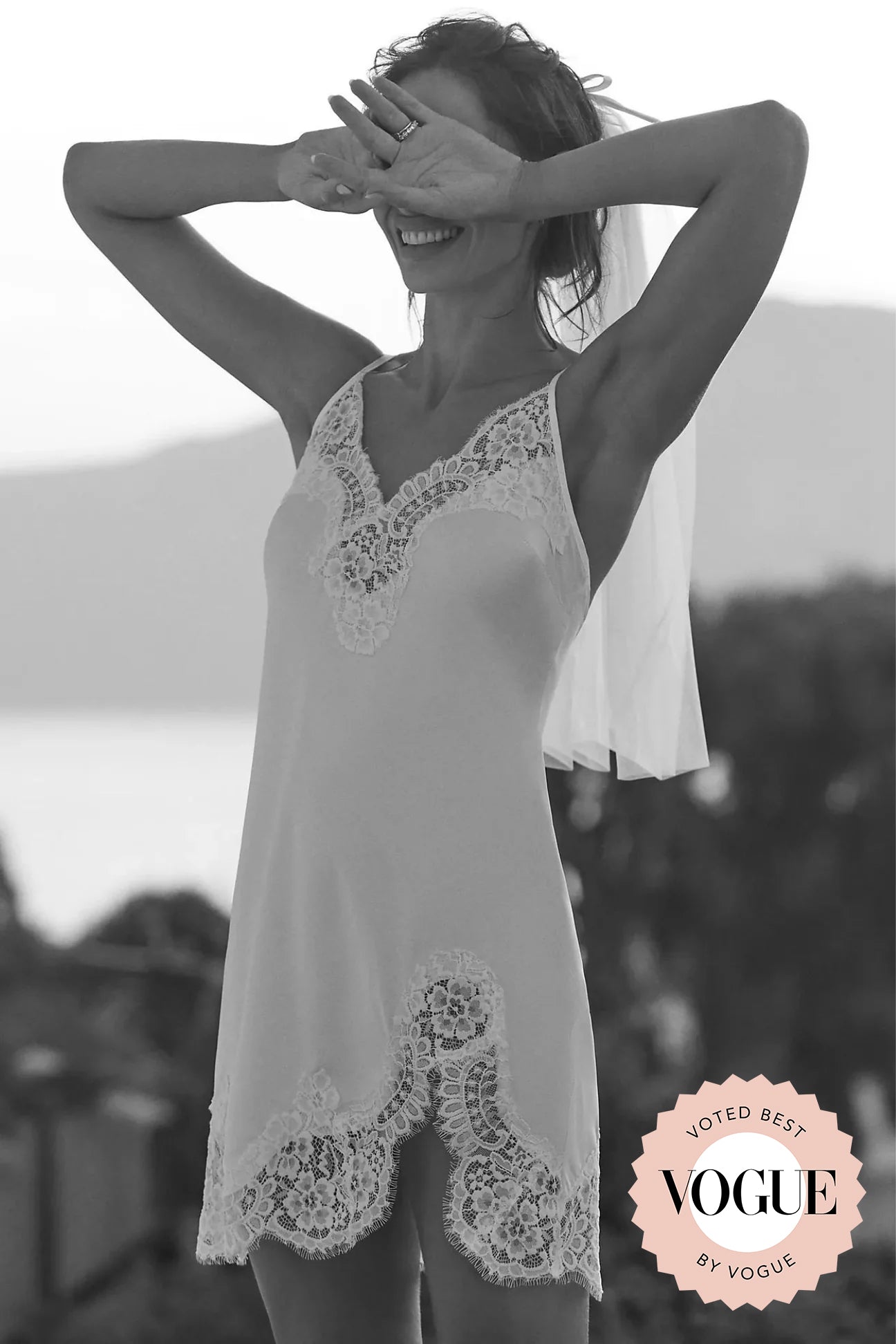 Complementing the robe, the Sian Collection also features equally enchanting camis and slips, each piece embodying the same timeless allure and exquisite craftsmanship. Whether you're toasting to a memorable evening or enjoying a quiet moment, getting ready with your Bridesmaids, the Sian Collection it the perfect range.