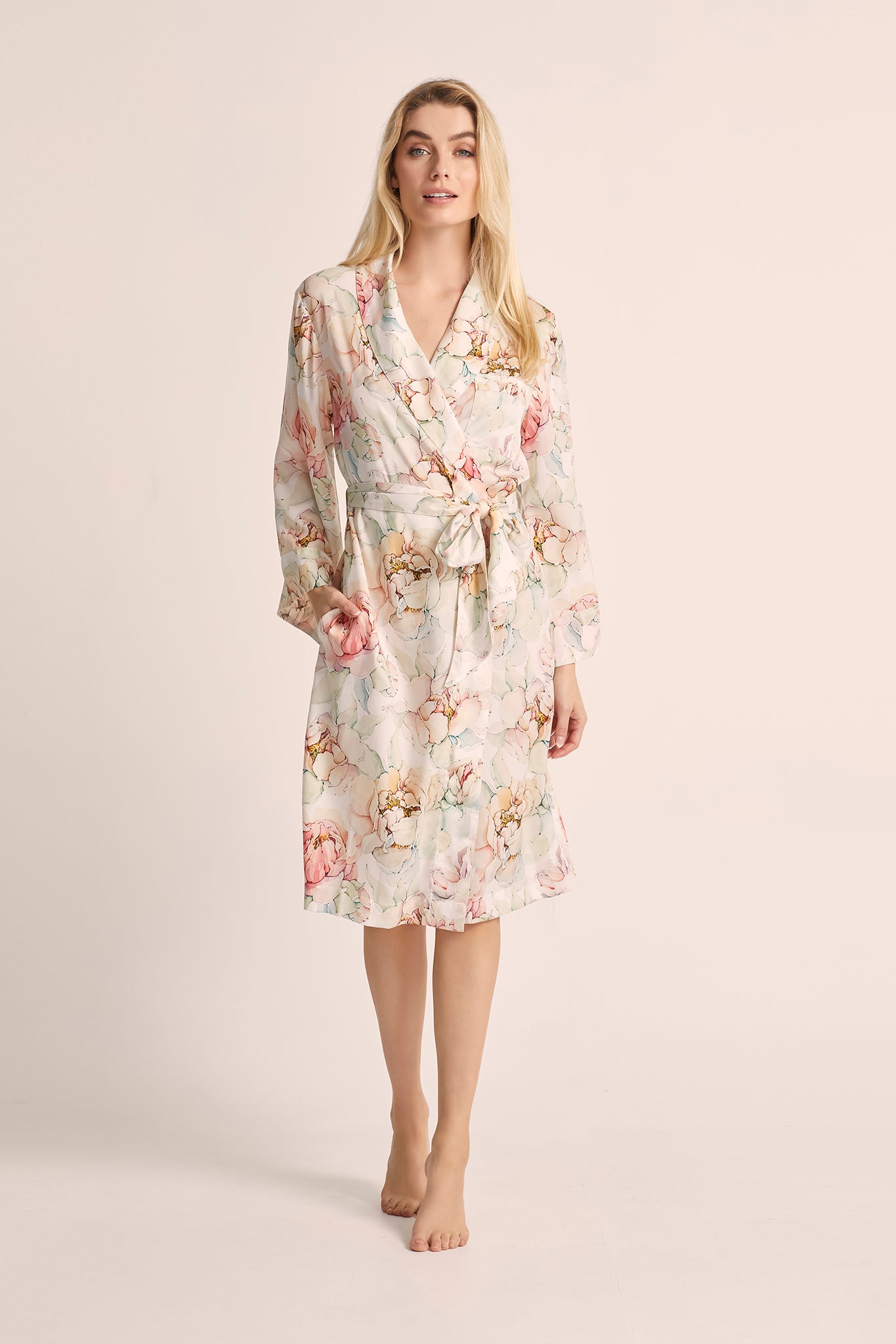 Peony Print in Watercolor: Immerse yourself in the timeless beauty of peony blooms brought to life with delicate watercolor hues. The Peony Print adds an artistic touch to your robe, creating a captivating visual masterpiece that's as enchanting as it is comfortable.