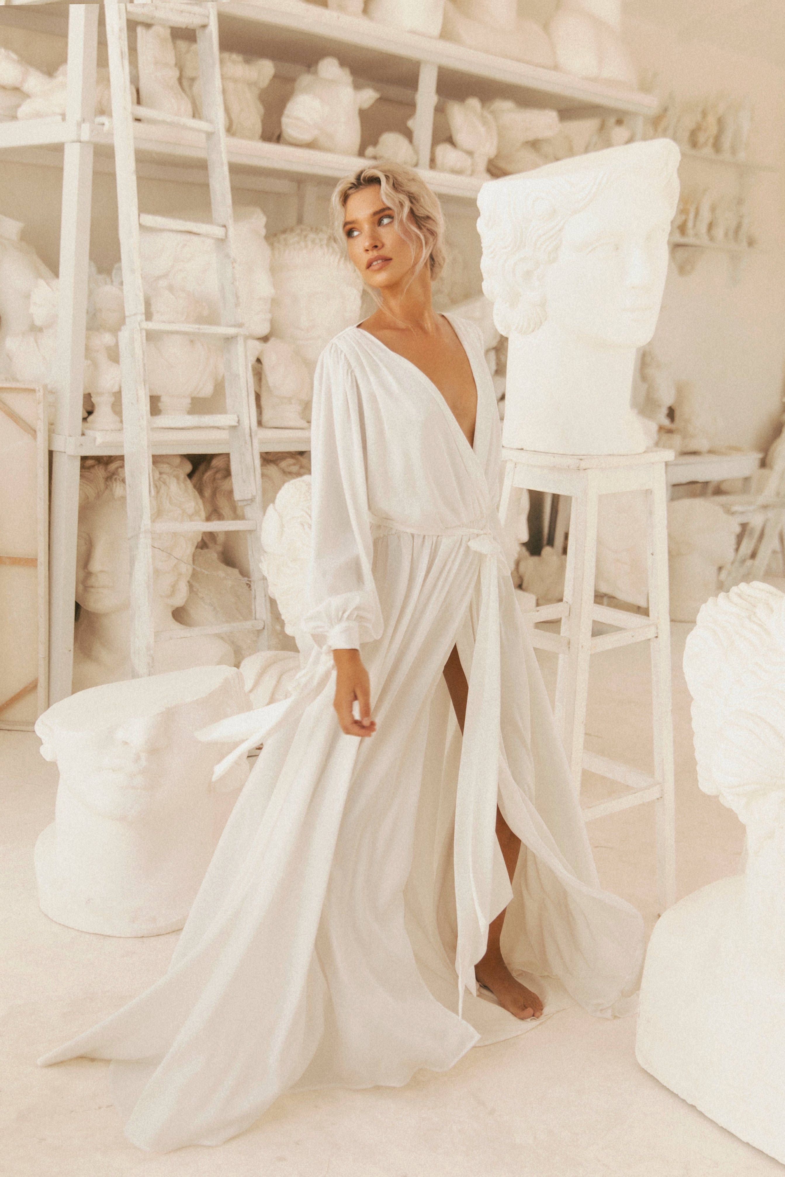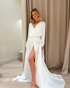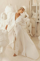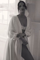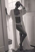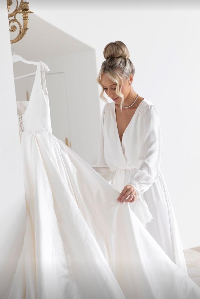 Introducing the Homebodii Hermione robe a captivating piece that embraces the wedding dress trend with sophistication and style.