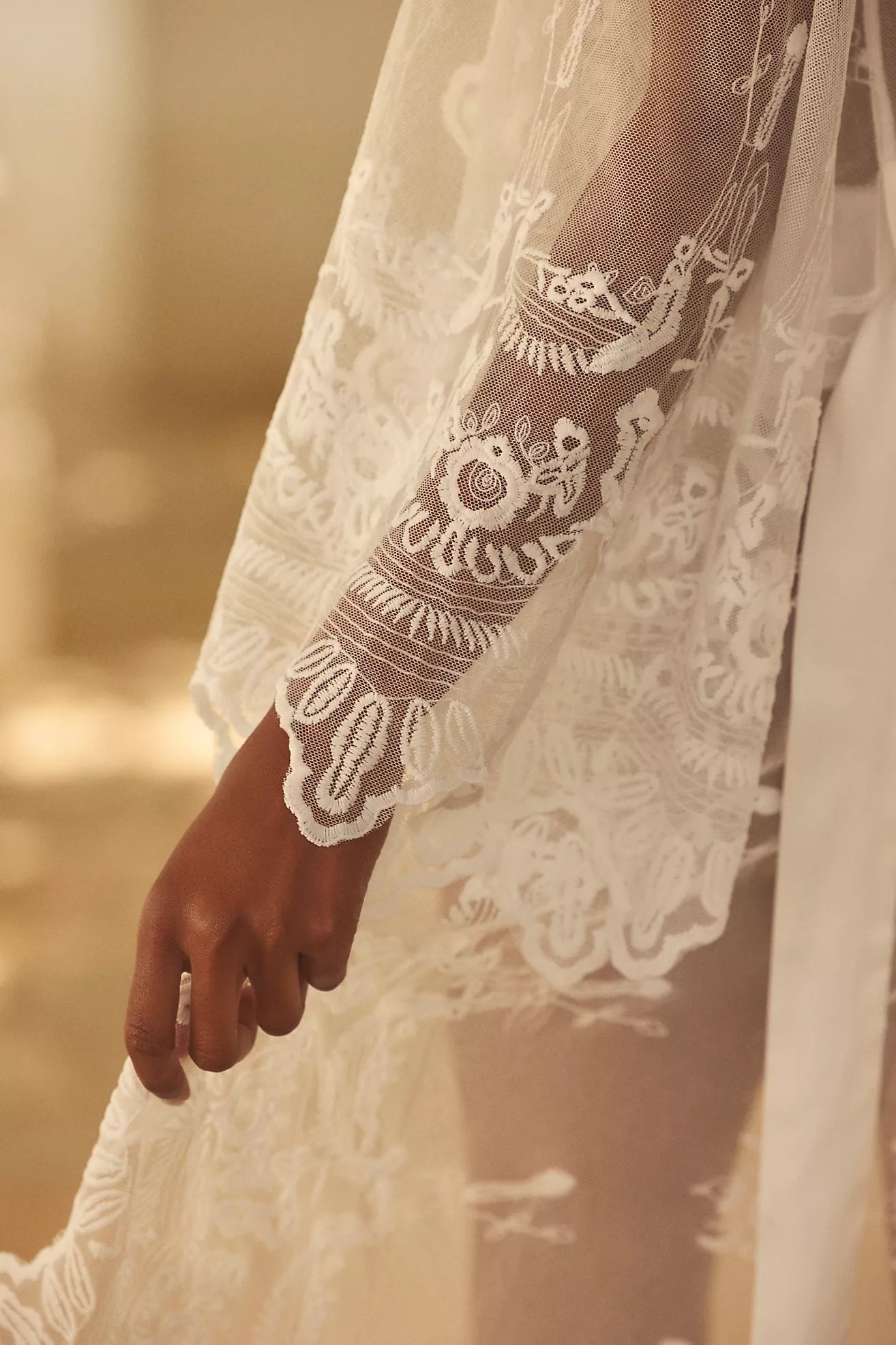 Indulge in the exquisite beauty of our Madonna Robe, a perfect addition to your wedding trousseau, honeymoon, and beyond. This bridal robe is a true investment that you will cherish for a lifetime.